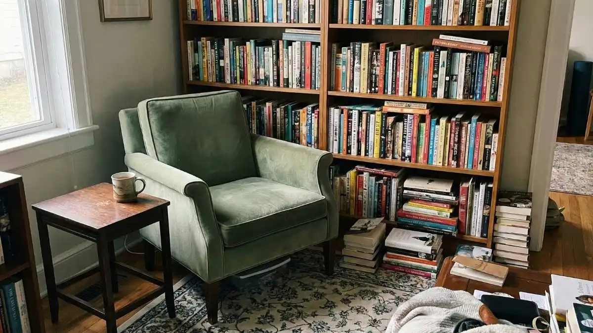 By thrifting for second-hand books or using what you already own, you are also practicing sustainability—rejecting consumerism in favor of appreciation. As Homes & Gardens points out, this trend is about spaces that feel “collected over time,” not bought in a day.