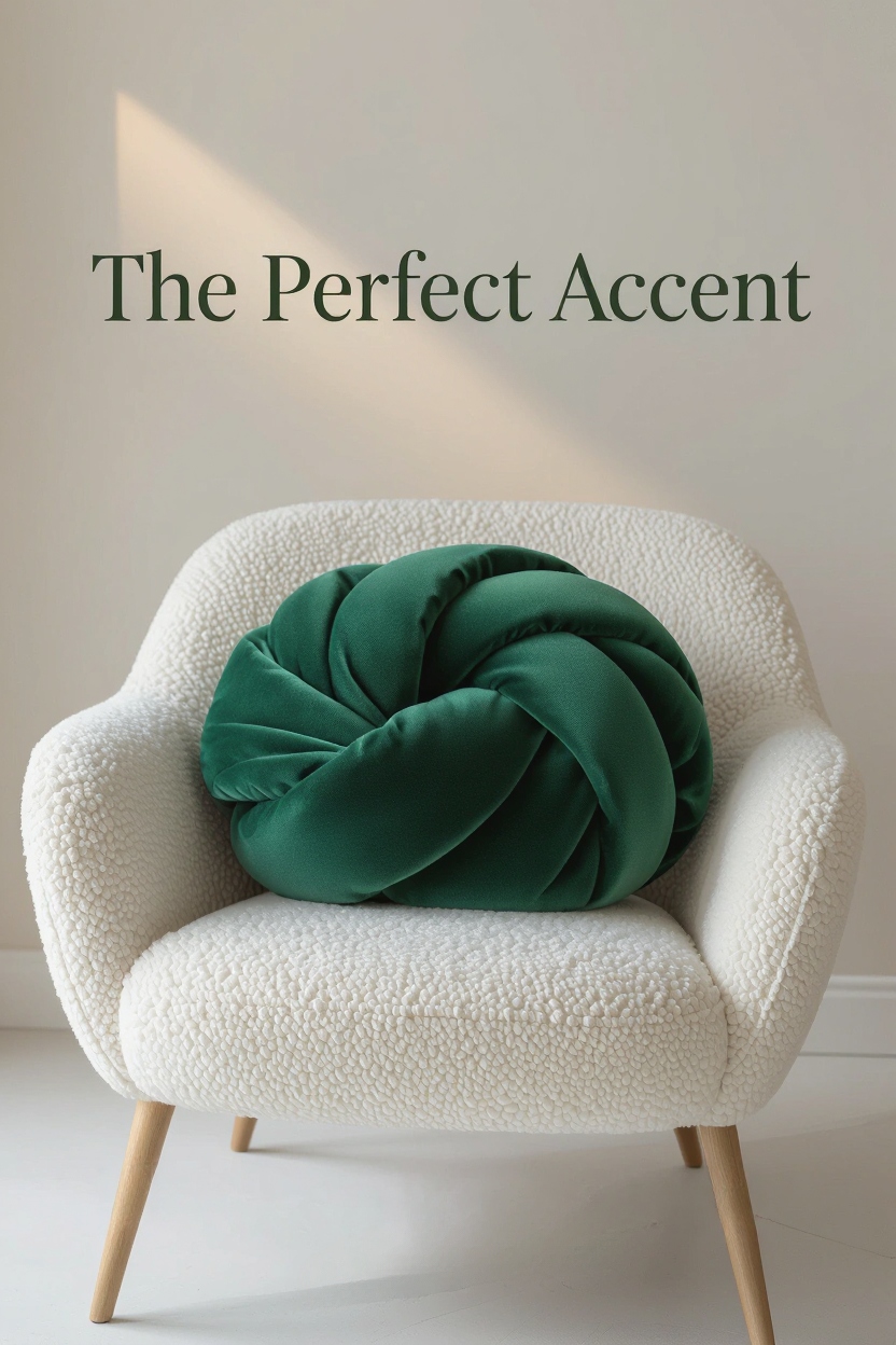 Certain objects don’t just occupy a space; they define it. Look closely at the image above. This isn’t just about placing a pillow on a chair. It’s a deliberate study in contrast and confidence. The deep, jewel-toned emerald of the velvet knot pillow possesses a rich, plush depth that absorbs light, suggesting luxury and a touch of mystique. Set against the nubby, tactile comfort of the cloud-white bouclé armchair, a powerful dialogue begins. It’s the meeting of bold sophistication and serene softness. The form itself—an endless, interlocking loop—is a piece of contained artistry, a self-contained sculpture that invites the eye to trace its path.