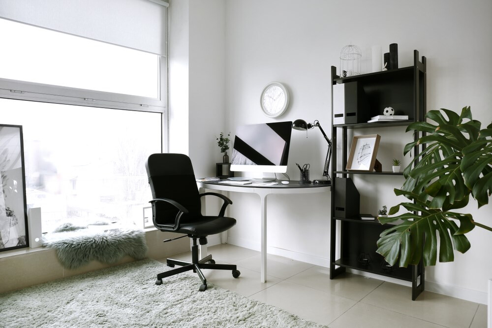 When furnishing your office, make sure that your workplace is on the side of the window, so that you get enough natural light into the room. The desk should by no means stand with its back to the window. This causes poor visibility on the screen and strains your eyes. If the daylight interferes with your work from time to time, transparent curtains or blinds will help you.