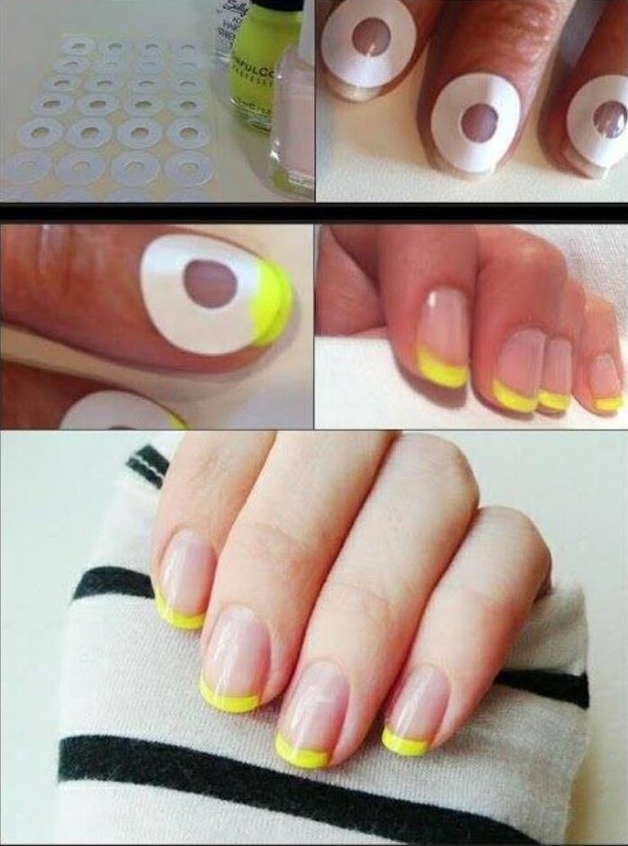Adhesive dots from office supplies can do so much more than you would expect at first glance. Acting as a mold for French nails. Important: Always let it dry well. Otherwise the paint will smear when pulled off.