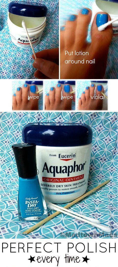 Vaseline helps to ensure that the edges remain precise when painting and that no nail polish gets on the skin. Apply a little ointment to the skin around the nail with a cotton swab. The oily layer prevents the nail polish from running off.