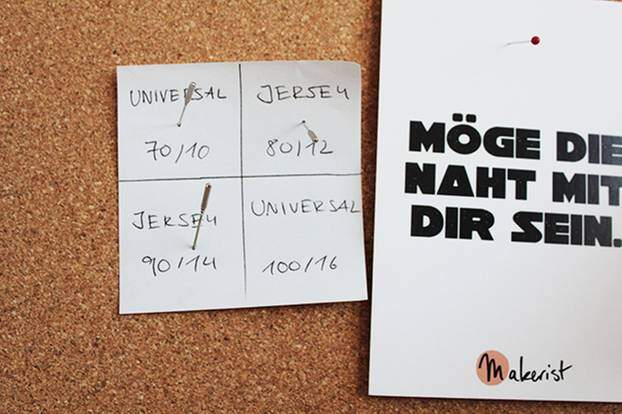 With the first advanced sewing projects come more sophisticated fabrics, which in turn require special sewing machine needles (e.g. from Schmetz or Prym). There is a great trick to keep track of things quickly and safely: label a cork pinboard and simply pin the different needles in the right place. This guarantees that no needle disappears in the bustle of haberdashery.