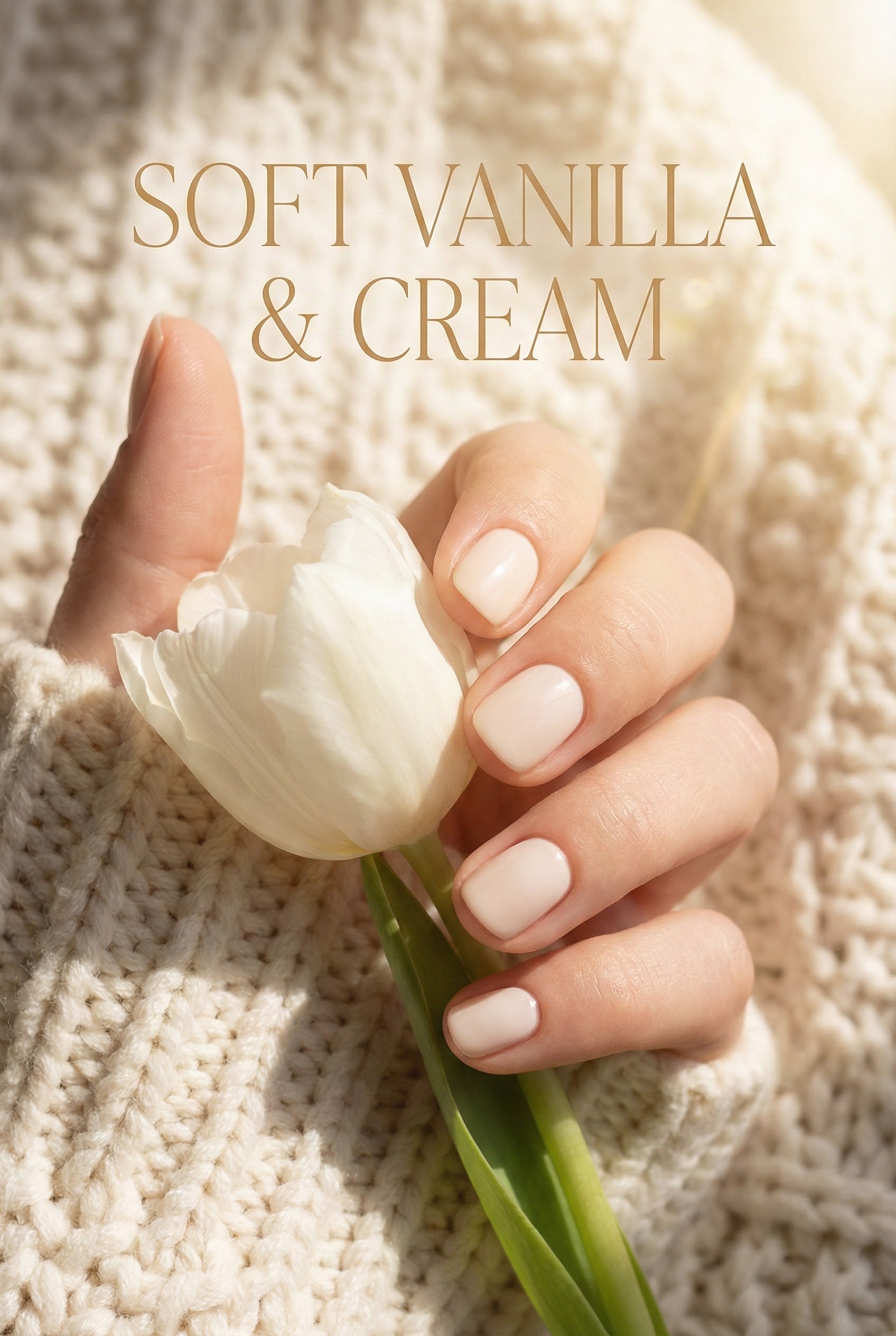 While often seen as a spring or summer shade, creamy vanilla nails are surprisingly versatile year-round. In the colder months, they stand out against dark wool coats and navy sweaters, acting as a bright point of light.